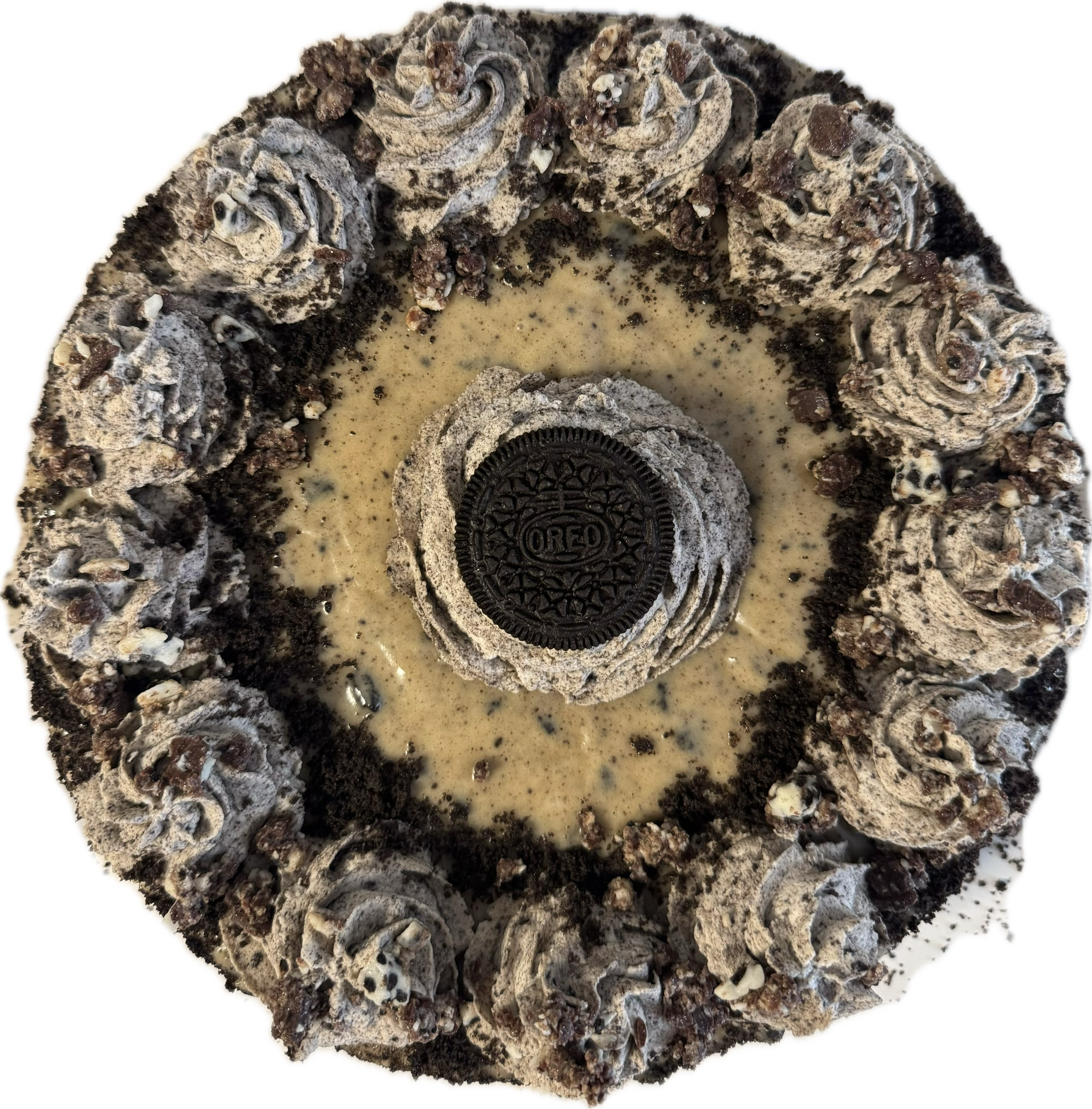 On top, a luscious layer of homemade cookies and cream ganache adds depth and decadence, finished with a swirl of whipped cream. The finishing touch? A sprinkle of cookie crumbles and a trio of mint truffles, making this cheesecake as bold as it is beautiful.